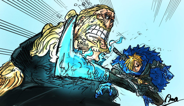 鉴于此,索隆与山治跟随其他巨人一同前行。他们肩负重任,准备与恶魔军团和神之骑士团展开一场恶战,以营救被困的娜美等人,共同对抗以伊姆为首的邪恶势力。战斗分工明确,索隆迎战麒麟戈姆圣,而山治则将目标锁定索玛兹。